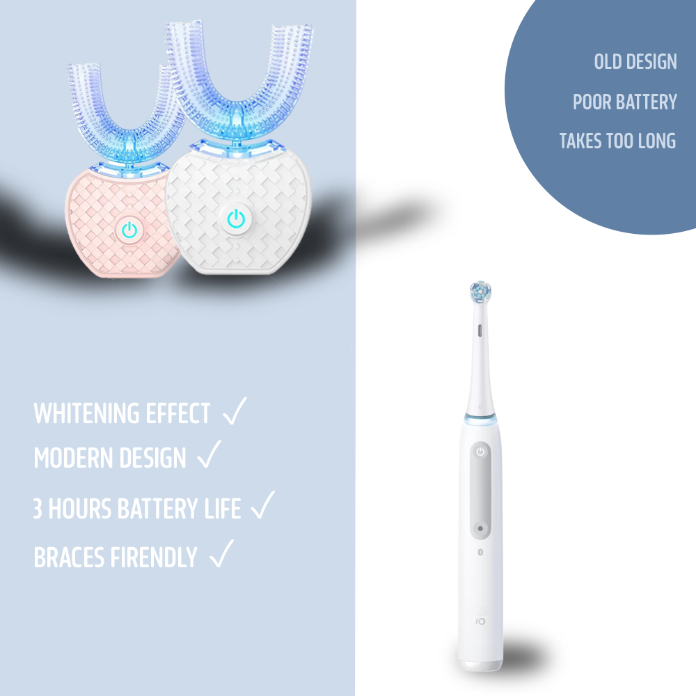 Say goodbye to traditional toothbrushes and hello to effortless dental care with our Automatic 360° U-Shaped Electric Toothbrush. Designed with a soft silicone mouthpiece and advanced blue LED technology, this toothbrush cleans all your teeth at once—quickly, gently, and effectively.